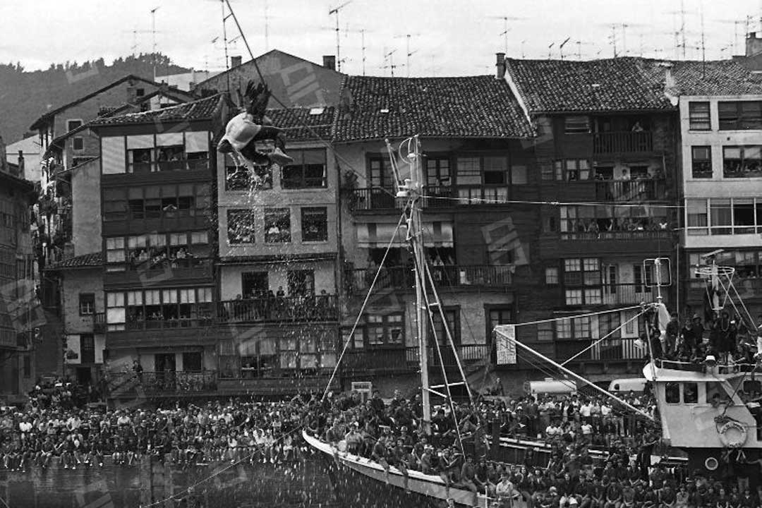 Duela 40 urte hartutako irudia. Urtero, irailaren 5ean, Lekeitiok bere jairik garrantzitsuena ospatzen du San Antolinen barruan: Antzar Eguna, 300 urtetik gorako tradizioa, non koadrilak izaten diren festaren protagonistak. Euskadiko ikuskizunik ezagunenetako bat da. Euskal Abertzaletasunaren Museoan dago.
