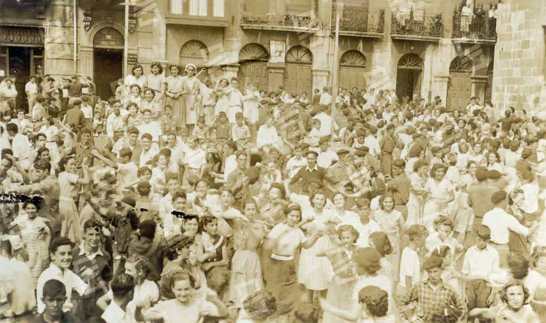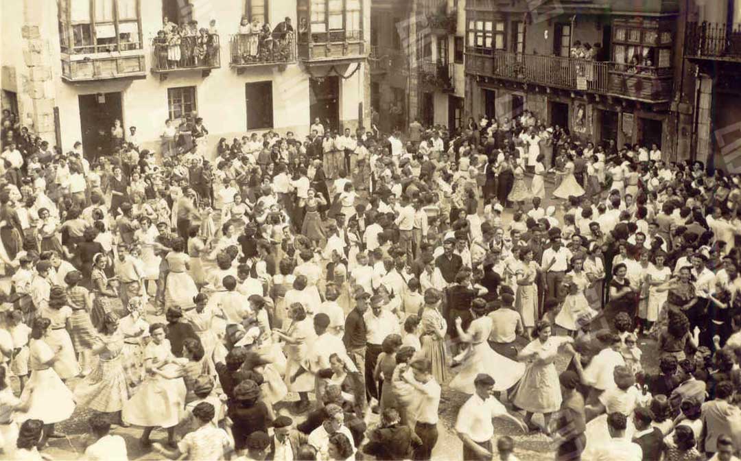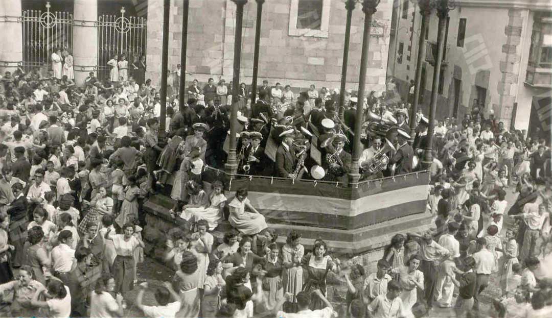 Cirilo Zabala argazkilari bermeotarrak 1952an jaso zuen Bermeoko Andra Mari jaiaren une hau. Bere alaba Sorkunde Zabalak Euskal Abertzaletasunaren Museoari emandako irudia.
